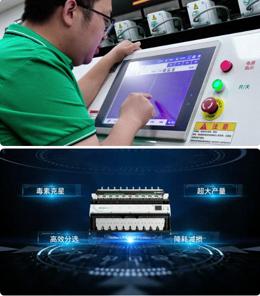 面對行業共性難題,泰禾智能以硬核科技精準破題——天眼Ultra紫外色選機。深度融合AI視覺識別與紫外多光譜檢測兩大核心技術,實現從外到內的純凈守護。